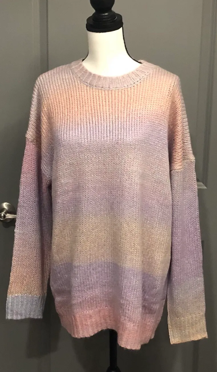 Forever 21 knit watercolor sweater. Color block design. Long sleeves, ribbed trim, and round necklin... Show more