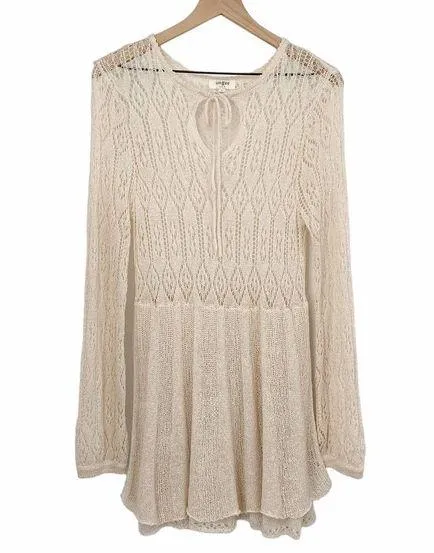 Umgee Crochet Lace Knit Sheer Mini Dress Overlay Keyhole Tie Long Sleeve Cream Womens Size Large C... Show more