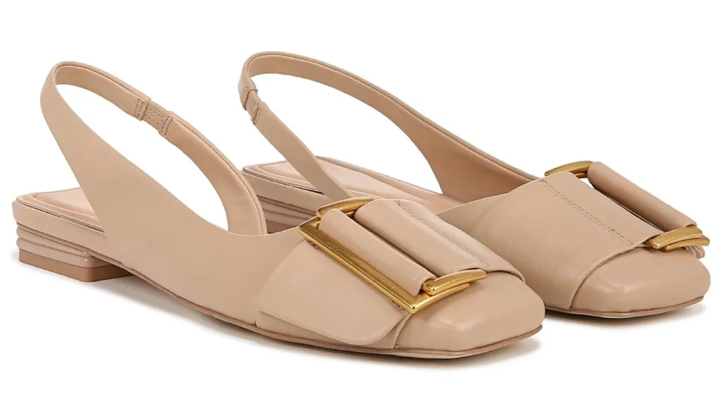 Franco Sarto Women's Classic Leather Ballet Flat Sling Backs Beige Golden Buckle detail Sz 8 Leather... Show more