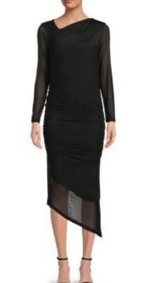 Calvin Klein Women's Asymmetric Hem Ruched Midi Black Sheath Dress, Size Medium, Brand New With Tags... Show more