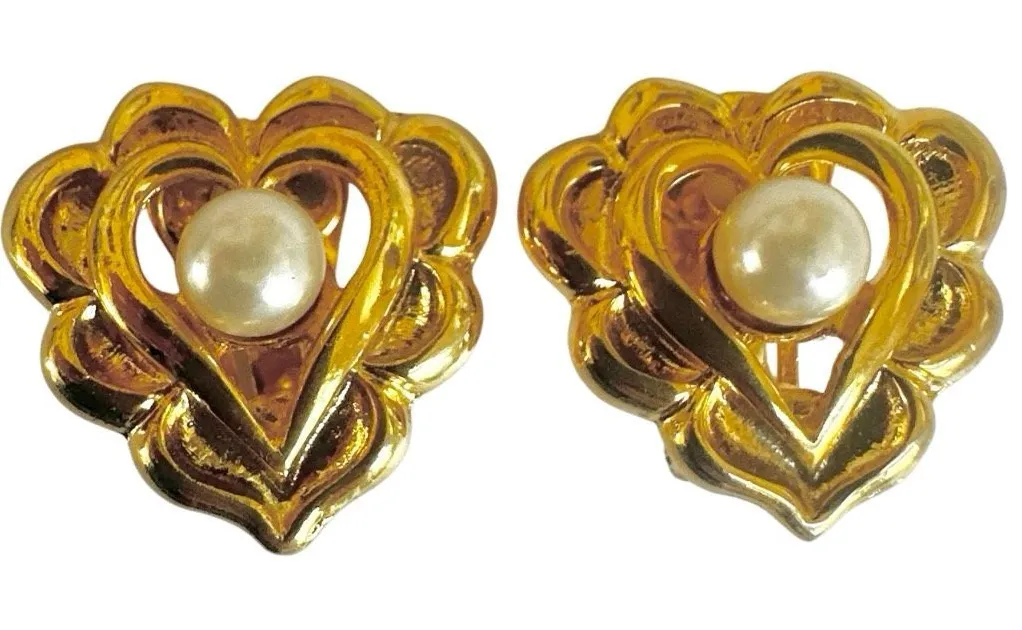Vintage Gold-Tone Heart & Pearl Clip-On Earrings šāØ Lovely vintage gold-tone clip-on earrings featuring a layered open-heart design with a luminous faux pearl center. The gold finish has a rich, mirror-like shine that beautifully frames the creamy pearl accent. A classic, feminine style reminiscent of 1980s or early 1990s costume jewelry ā elegant yet playful. Perfect for adding a touch of vintage romance to any outfit, whether you're dressing up for a dinner date or just want that timeless sparkle. Excellent vintage condition ā bright gold tone with no missing pearls or major wear. Photos are part of the description. Reasonable offers welcome! š° $20 Bundle to save! Free gift with a purchase of 3 or more items. Same or next day shipping & packed with care. #vintageearrings #pearlearrings #goldtone #cliponearrings #heartjewelry #romanticstyle #classicglam #timelessbeauty #jewelrylovers #vintagefinds