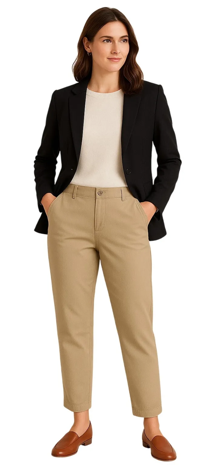 Classic J. Jill cotton-blend trousers in a light khaki shade. Features a flattering mid-to-high rise, front pleats, side pockets, and back welt pockets for a polished silhouette. Made from 96% cotton and 4% spandex for comfortable stretch and easy movement. Zip and button front closure with belt loops. Measurements (approx): Waist 35" | Inseam 30" Condition: gently worn condition—no visible flaws or stains. Style Notes: Perfect versatile neutral pants for work or casual wear. Pair with a linen blouse, sweater, or denim jacket for a modern minimal look. J. Jill khaki pants, cotton spandex trousers, tapered leg, neutral workwear, stretch chinos, classic minimalist pants, size 16 women’s