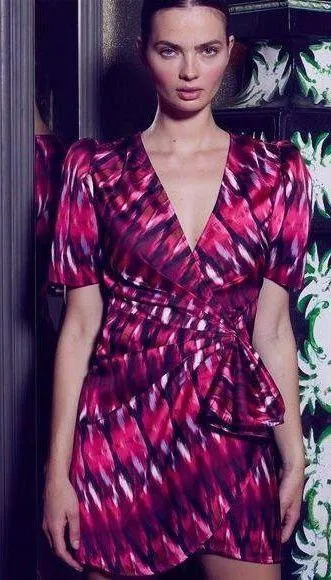 MISA Los Angeles Amina Wrap Chic Satin Ruffle Fuchsia Dress NWT XS $357 Pink - $150 (57% Off Retail) New With Tags - From Blanca