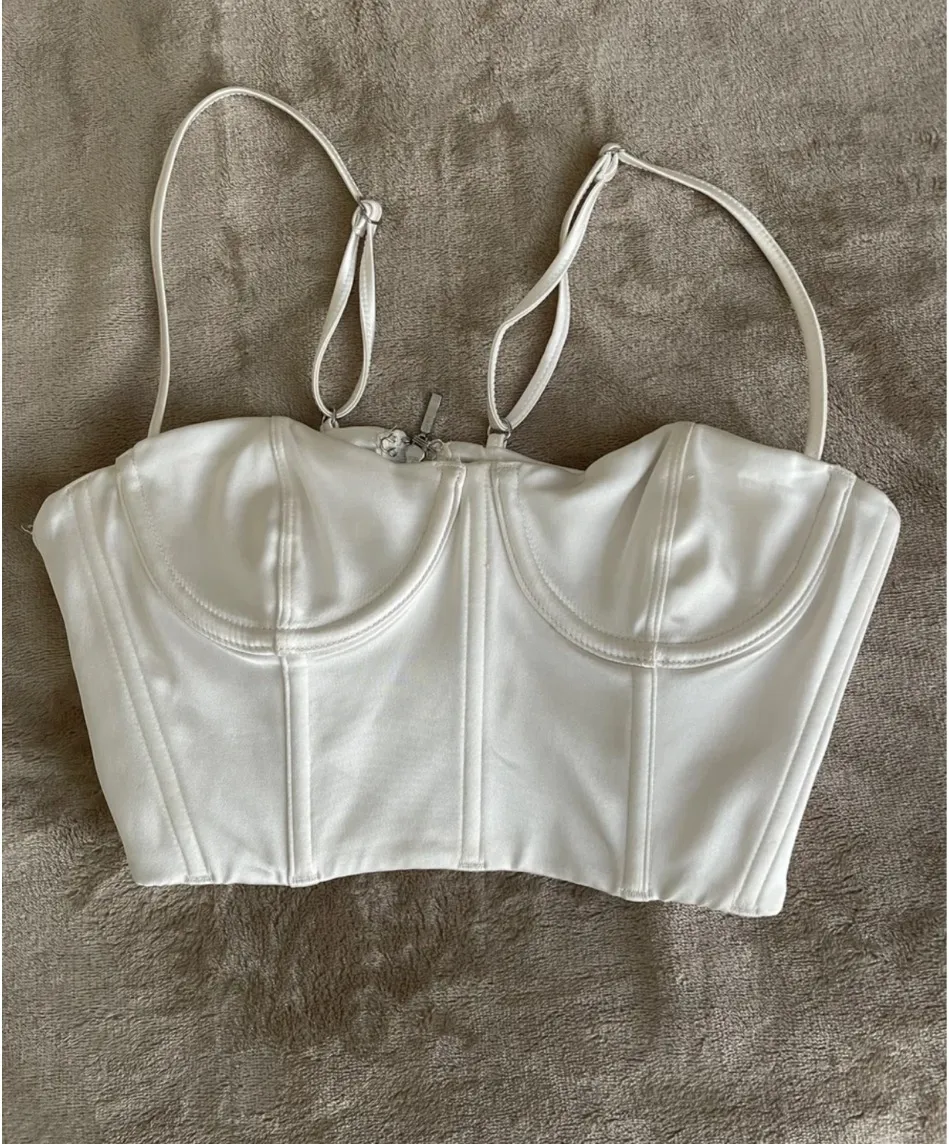 Super flattering white crop corset from white fox, worn once, slight discoloring Good condition