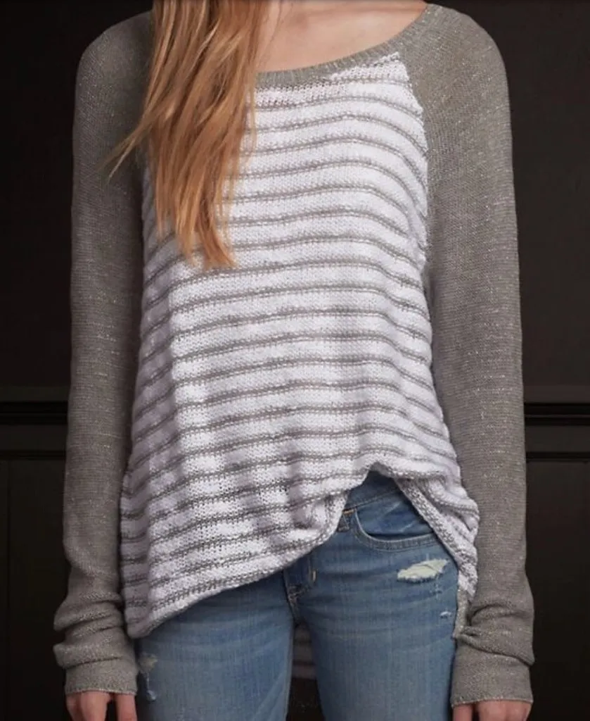 Size Small Hollister Knit Shine Striped Sweater, featuring a blue gray and white striped pattern wi... Show more