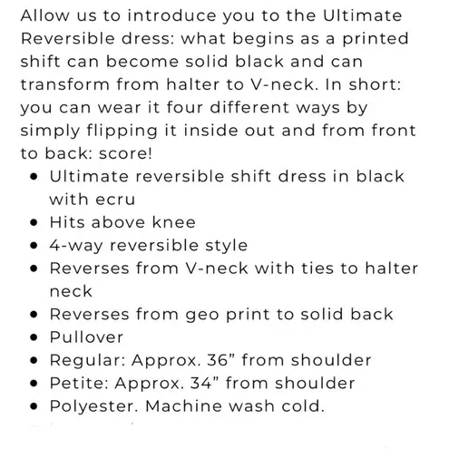 New with tags; This dress is FABULOUS! Black/ivory animal print reverses to a solid black; drawstrin... Show more