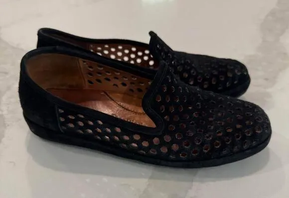 L’Amour Des Pieds Perforated Slip On Leather Loafers Women’s Size 5.5M Correze Black Comfort - Cla... Show more