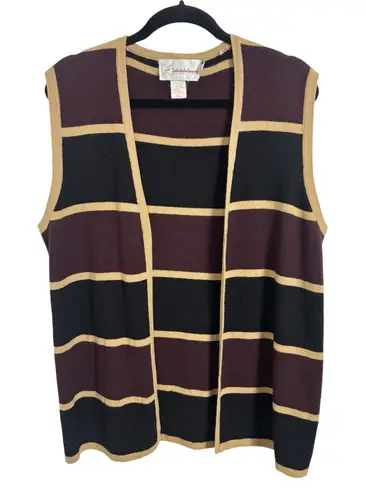Preppy Vintage 90s Nygard Collections Women’s Size 10-12 Burgundy Black & Tan Striped Open Front... Show more