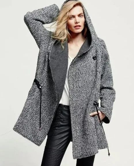 Free People Satellite Image Tweed Hooded Swing Coat Size XS Black and white color Tweed oversized h... Show more