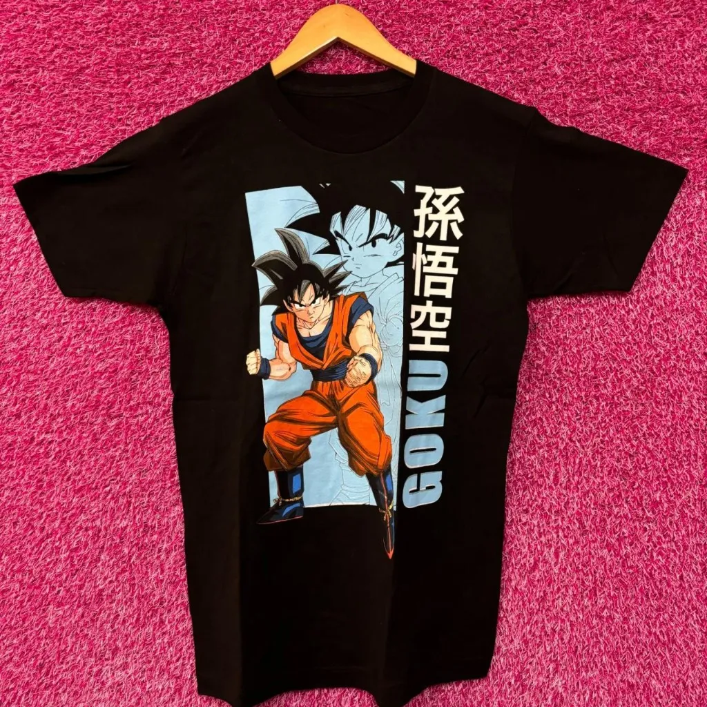 Dragon Ball Z Goku Anime Tshirt size Medium generally measures 19 inches pit to pit 29 inches long amazing graphic new great overstock condition perfect for fans of the legendary anime Dragon Ball Z