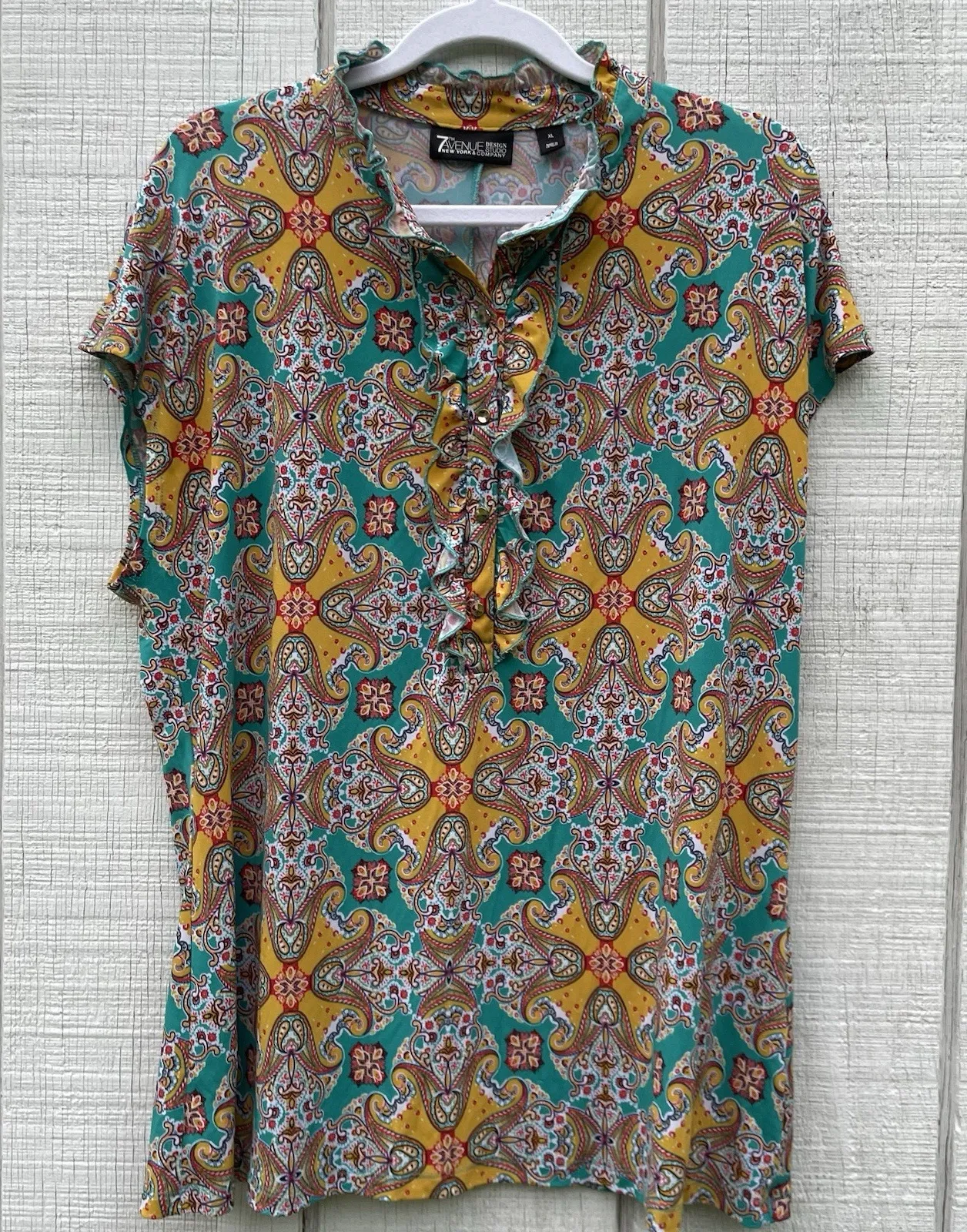 7th Avenue Yellow Teal Shortsleeved‎ Blouse Top Shirt Summer Dressy XL - $13 - From Hannah