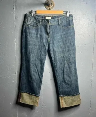 Loft "Marisa" mid rise cropped cuffed blue denim jeans. Stretchy five pocket single fly with back en... Show more