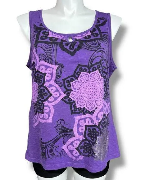 Tank Top Sleeveless Keyhole Scoop Neck Purple Floral Print Faded Glory Condition: Excellent used con... Show more