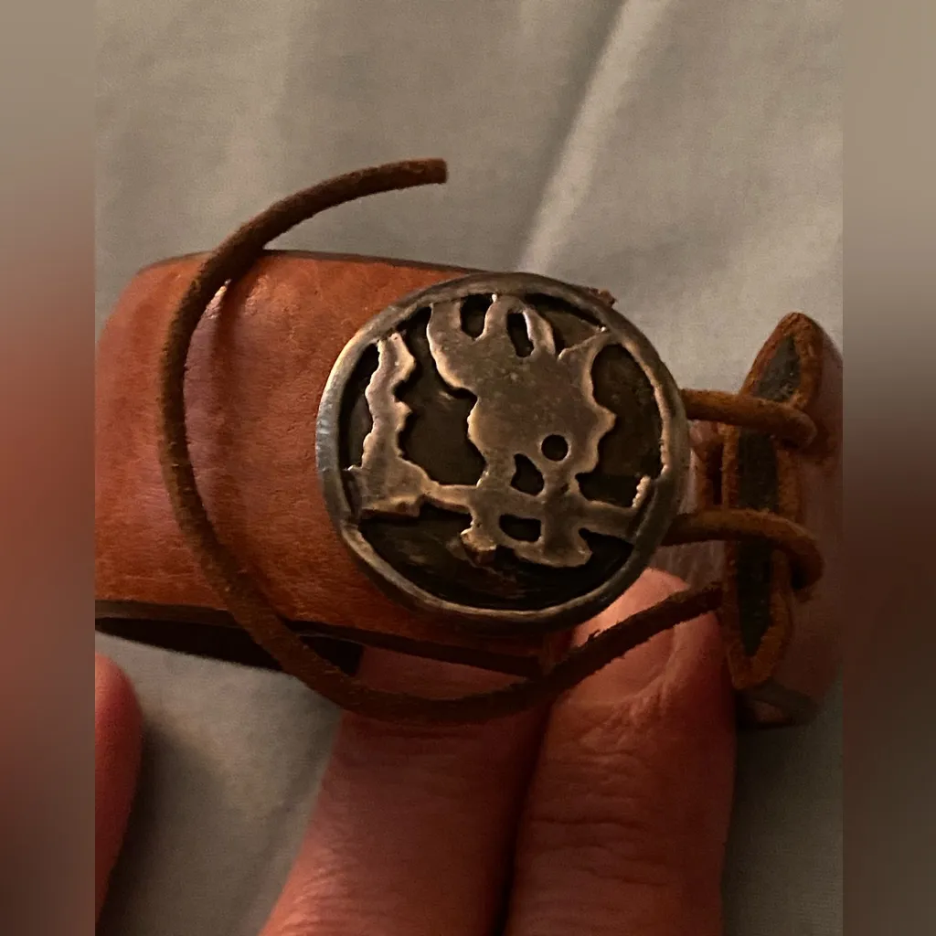 8” Brown Leather Bracelet Silver Round Pendant Western Cowgirl - $5 - From Terri