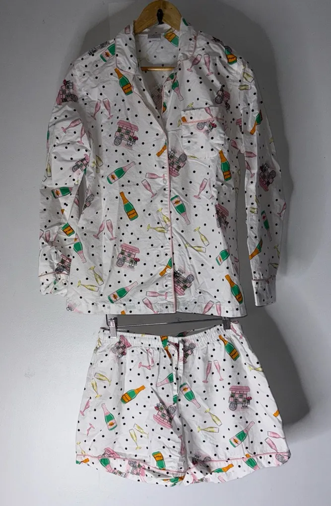 8 oak lane pajamas 2 Piece Shorts Long Sleeve Top Campaign Print Cotton Medium White - $33 - From Crystal