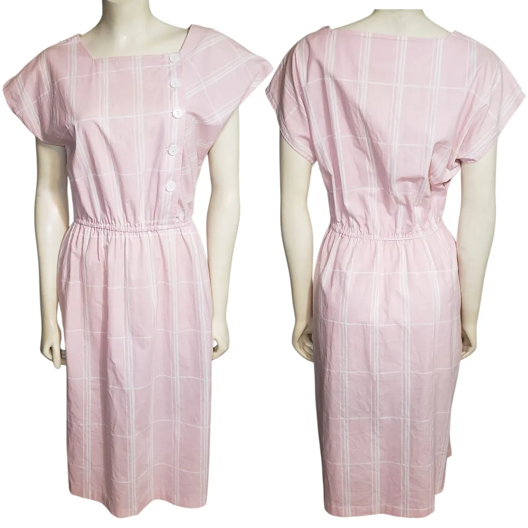 80s Does 50s 60s Vintage Lisa Jo pink dress with white buttons and stripes (see measurements) Flat... Show more