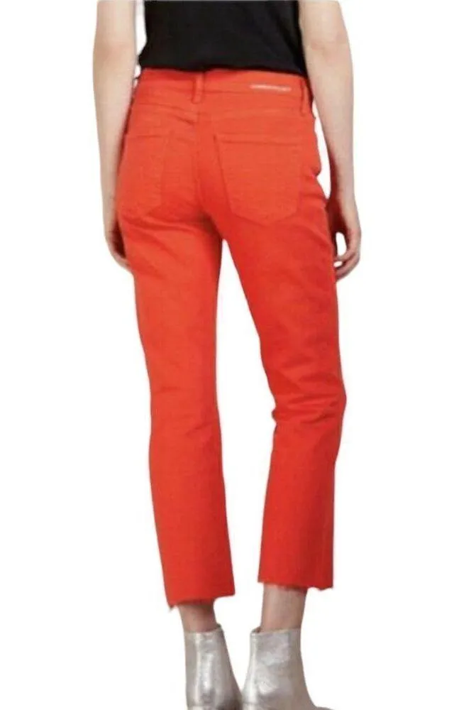 Good condition Straight leg Cropped - 25” inseam Raw hem Intentional distressing at front pocket sea... Show more