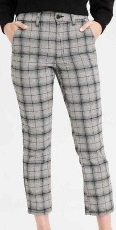 Plaid Button Fly Straight Leg Mid-Rise Pockets Stretch Regular Fit Polyester Blend Viscose Blend Pr... Show more