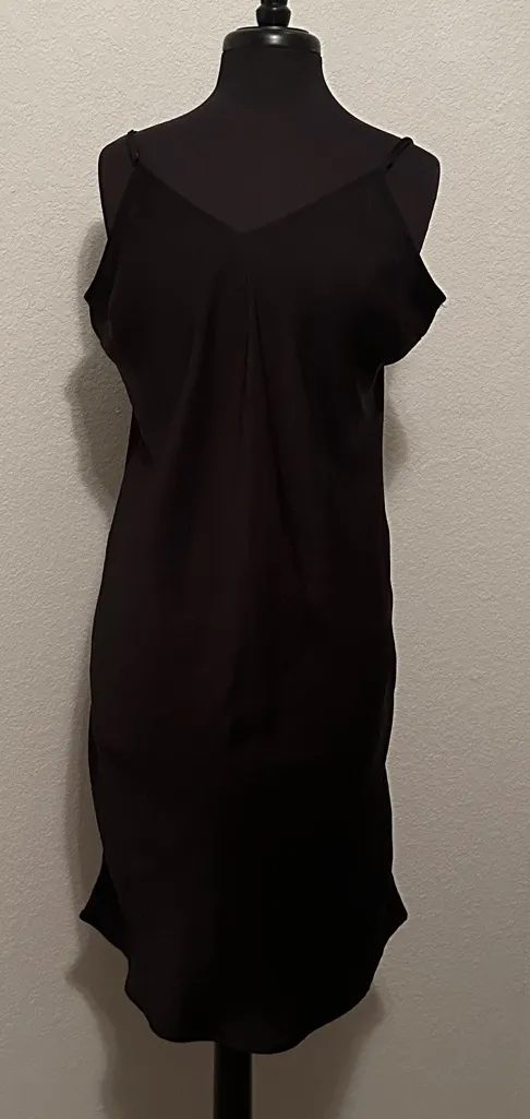 Stylish black V-neck dress. Ideal for versatile wear. Approximately 22” bust (40” around) and 35 inc... Show more