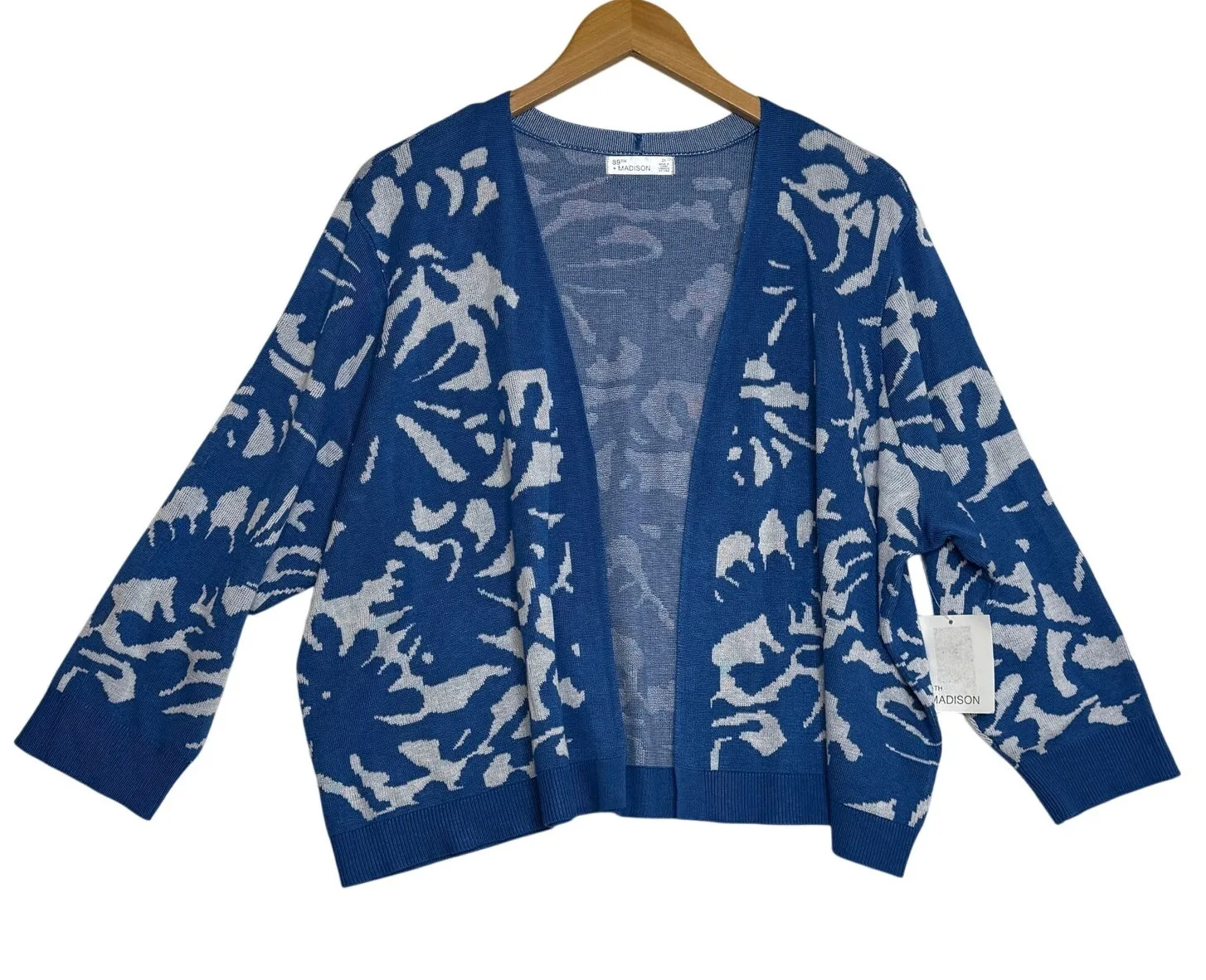 Wrap yourself in comfort with this eye-catching layer that adds instant flair to any outfit. The flowing silhouette and vibrant pattern make it a stylish go-to for both casual days and polished looks. Measurements: Size 2X Bust: 52" Length: 21" Material: Rayon Blend Key Features: * Open front * Long sleeve * Abstract print * Ribbed hem and cuffs * Knit fabric * Wear it over a fitted tank and dark jeans for an effortless ensemble. * Pair with tailored pants and ankle boots for a chic office vibe. * Belt it at the waist for a more structured, flattering shape. * Layer with a neutral scarf and simple jewelry to let the print shine. Boho, Artsy, Preppy, Cozy, Minimalist, Classic, Smart casual, Quiet luxury