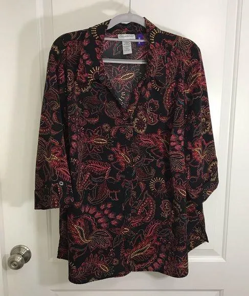 Catherines Black Button Down with Red and Pink Paisley Design 1XWP Size undefined - $19 - From Cathy