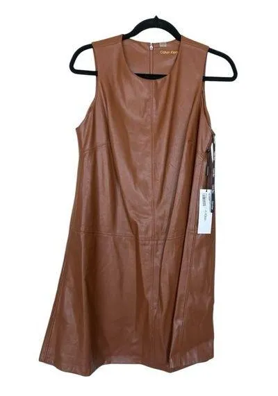 Calvin Klein Brown Sleeveless Leather Dress Size 4 Elegant brown leather dress. Sleeveless design.... Show more