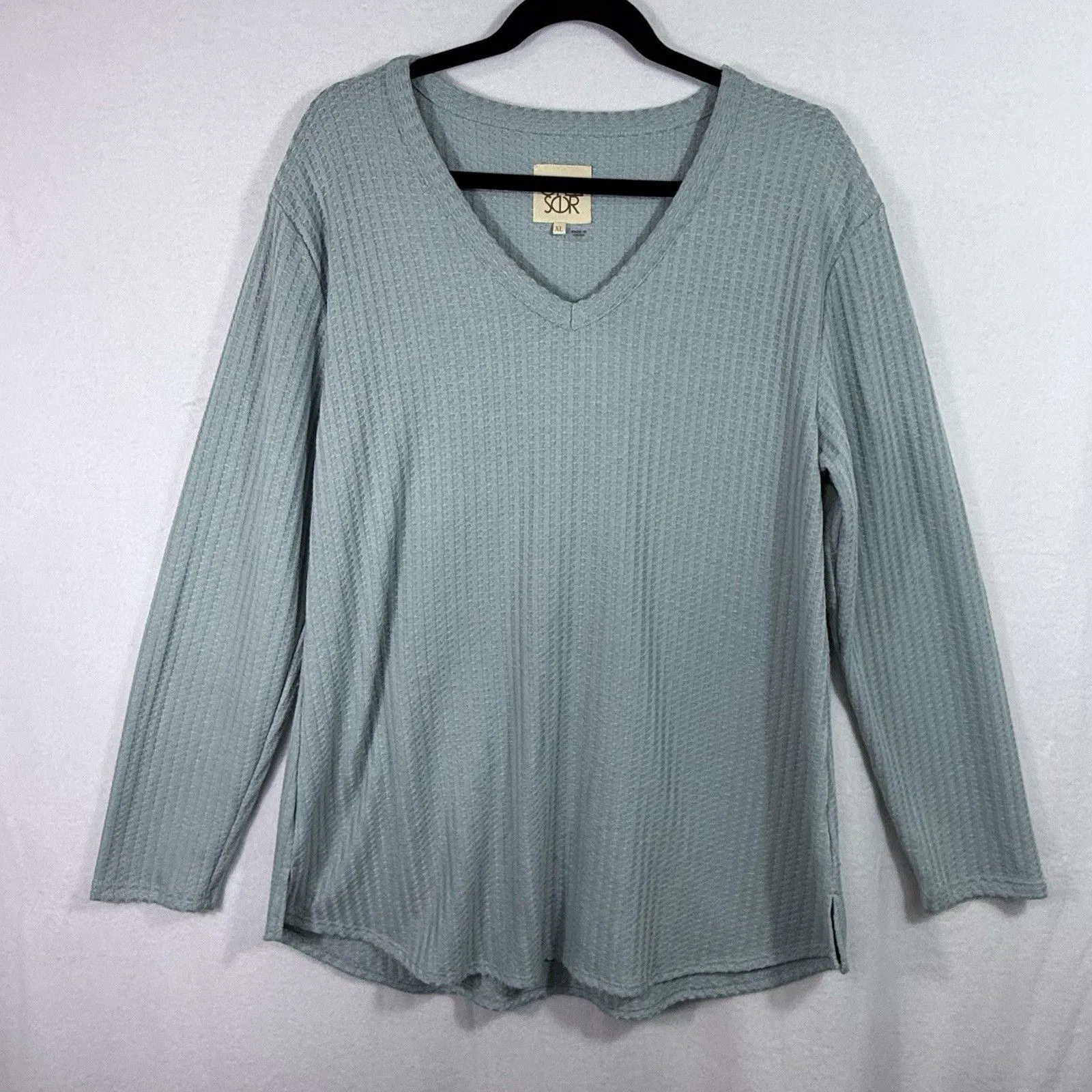 Chaser Green Waffle Knit V-Neck Long Sleeve Top Shirt Women's XL Thermal Long Hem Stretch Cozy Trave... Show more