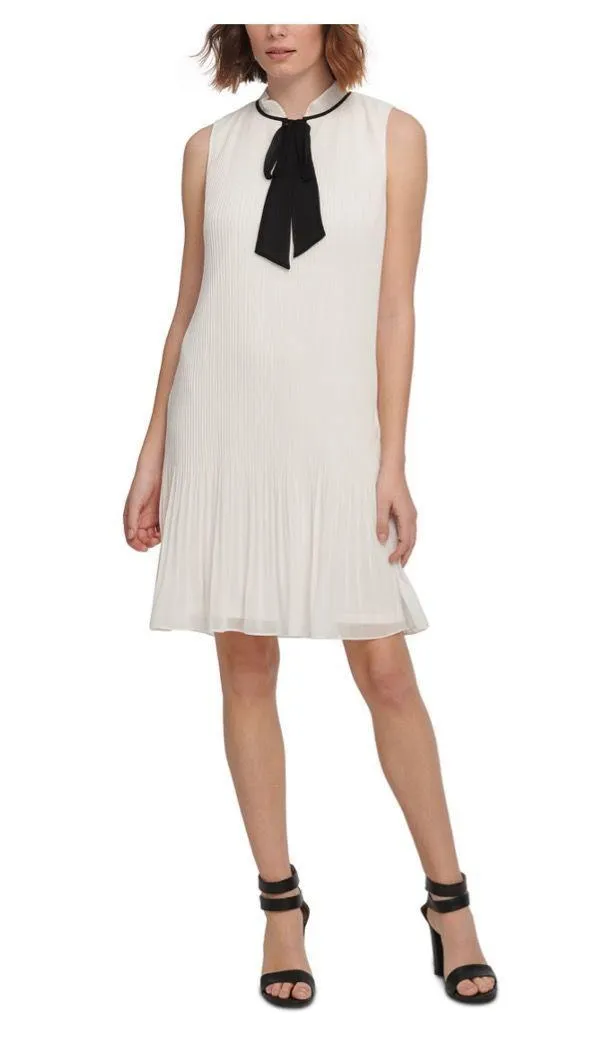 DKNY white Sleeveless Pleated Tie-Neck Shift Dress NWT