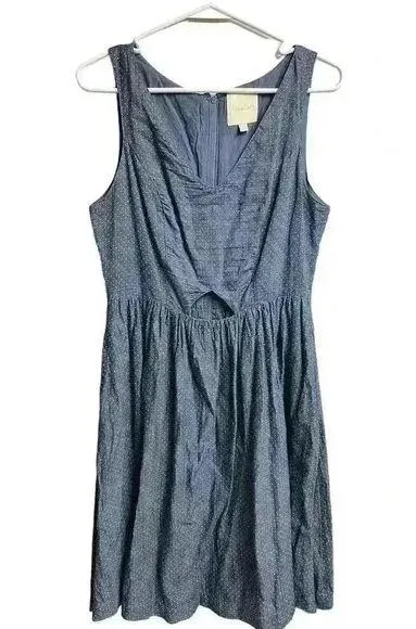 Modcloth Blue Chambray Dress Blue with white polka dots Peekaboo Cutout in front Side pockets Sleeve... Show more