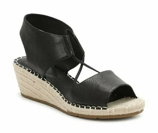 NWOT Eileen Fisher Black Leather Agnes Espadrille Wedge Sandal Women's Size 9 - $16 (87% Off Retail) - From Katie