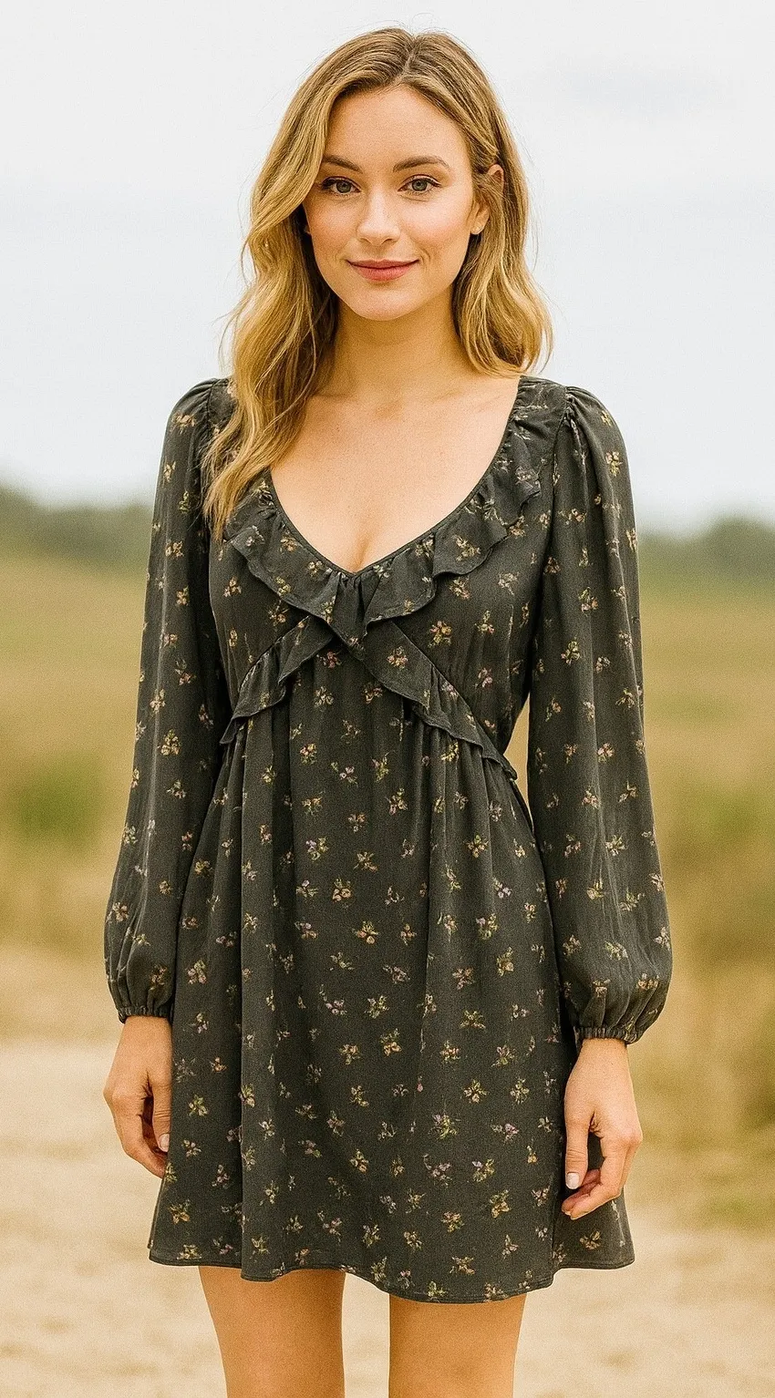 Features: American Eagle Outfitters, Ditsy Black Floral Dress, Size L, Purple/Yellow Flowers, Short,... Show more