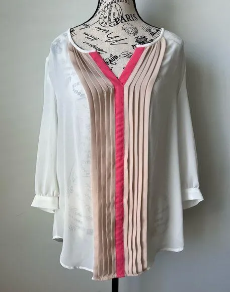 Ann Taylor Off-White w/ Beige & Pink Front Pleats 3/4 Sleeve Blouse Size Large White - $15 - From Jessica