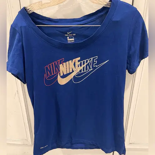 NIKE DRI-FIT WOMENS S/S CREWNECK TSHIRT ROYAL BLUE SMALL 57% Cotton, 43% polyester. Gently preown... Show more