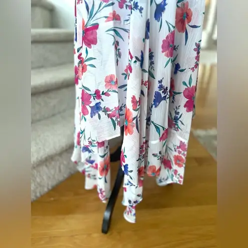 Excellent condition. Scoop neck, sleeveless. Back zipper, tie at waist. Asymmetric shark bite hem, m... Show more