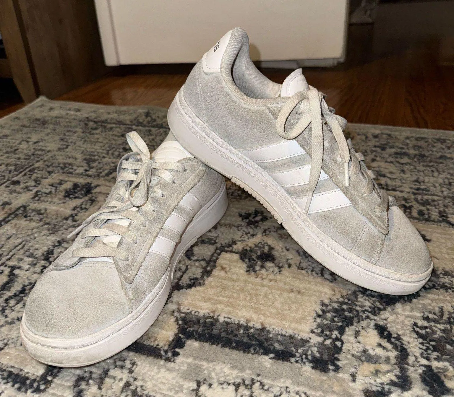 Grey Cloudfoam Adidas size 9.5 Minor wear, a little bit dirty from wearing them, can be easily clean... Show more