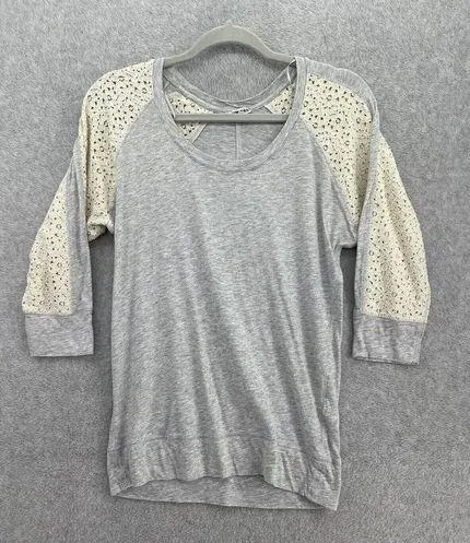 Express Women's Raglan Shirt Lace 3/4 Sleeve Gray Marled Size Medium Scoop Neck 60% Cotton 40% Modal