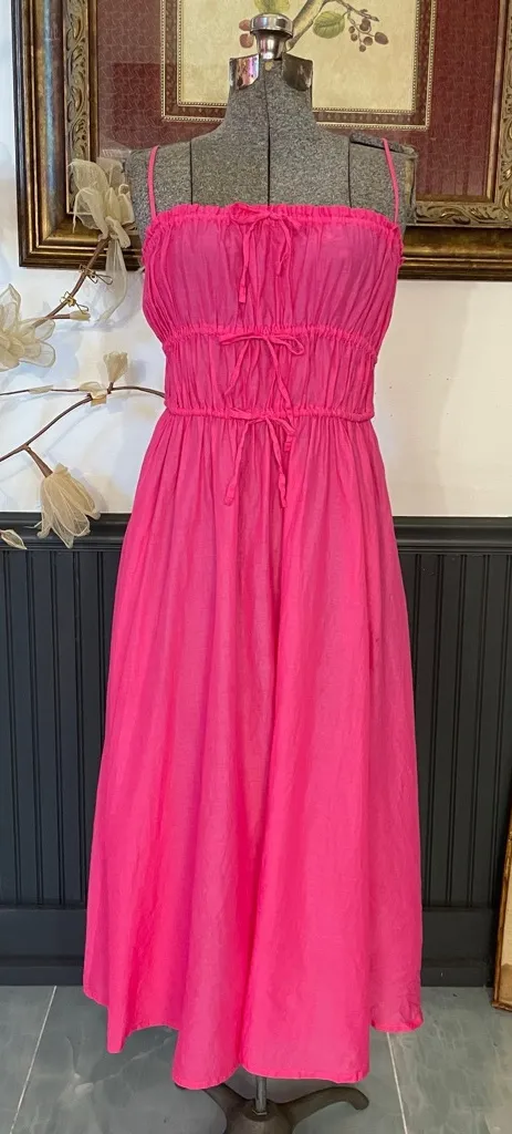 Check out this gorgeous semi sheer bright pink midi dress with elastic bust with adjustable tie deta... Show more