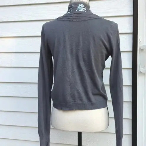 AK | Anne Klein size small gray cardigan. Sequin front trim. single front button. excellent like new... Show more