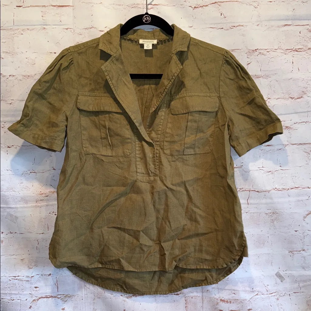 Sundance Sage Green popover Shirt blouse shirt sleeve xs collar linen - $45 - From Kristina