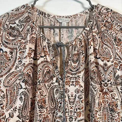 Lucky Brand Floral Front Tassel Peasant Brown Tan Blouse Size Large EUC #0741 - $39 - From Vir