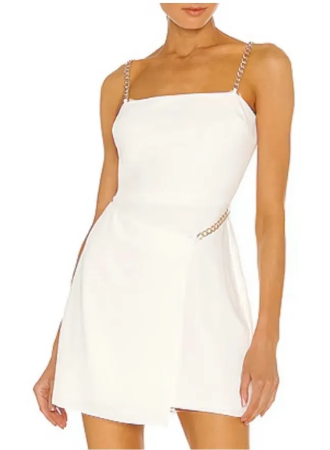 AU Mini Dress with Gold Chain Accents Size M Ivory Color (not white)