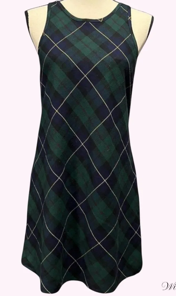 Chic and stylish plaid sleeveless dress in green and blue. Perfect for any occasion. 90s vintage Ga... Show more