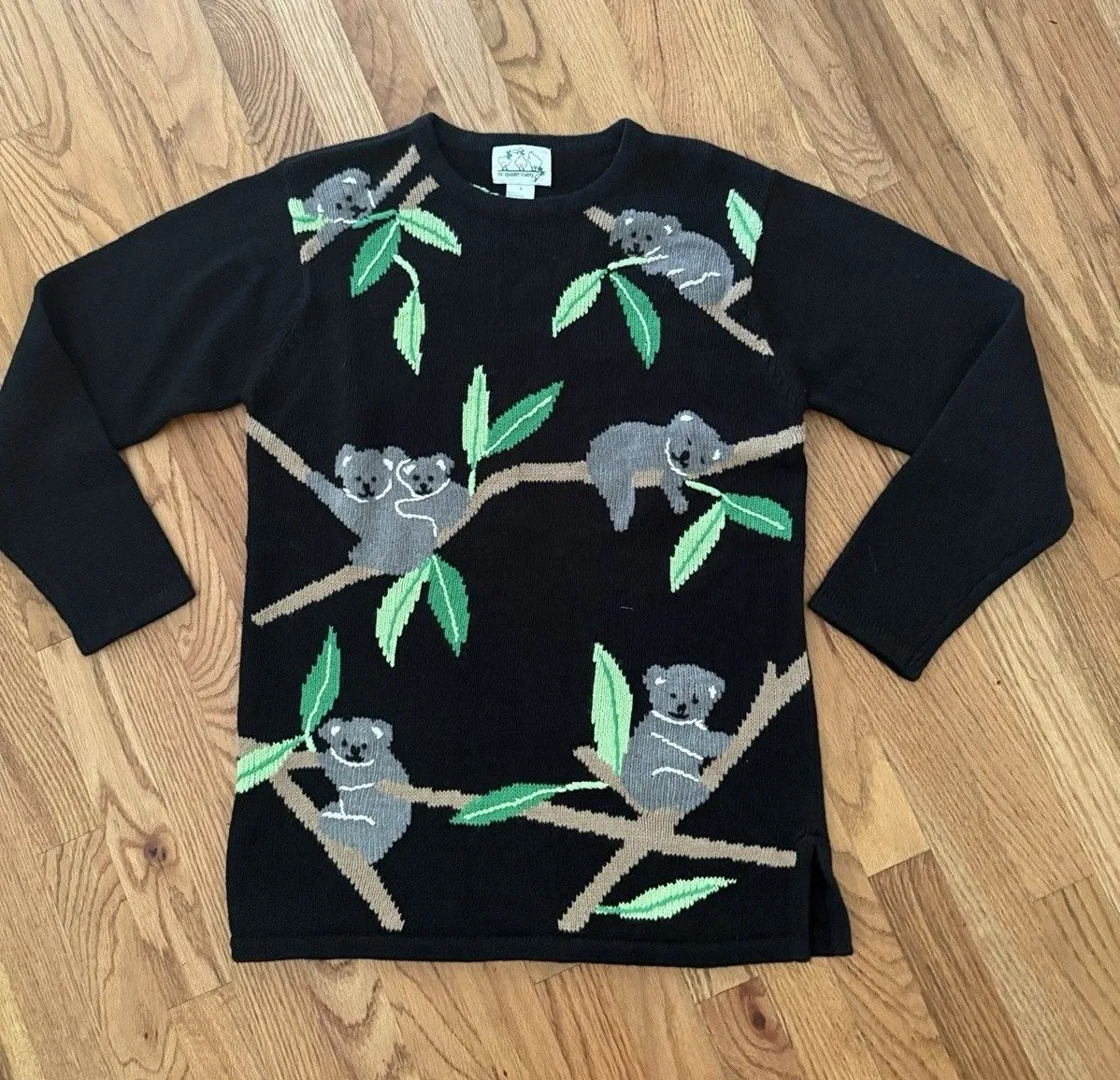 90s vintage Quacker Factory cute koala bear novelty sweater S teacher Black - $40 - From NiCole