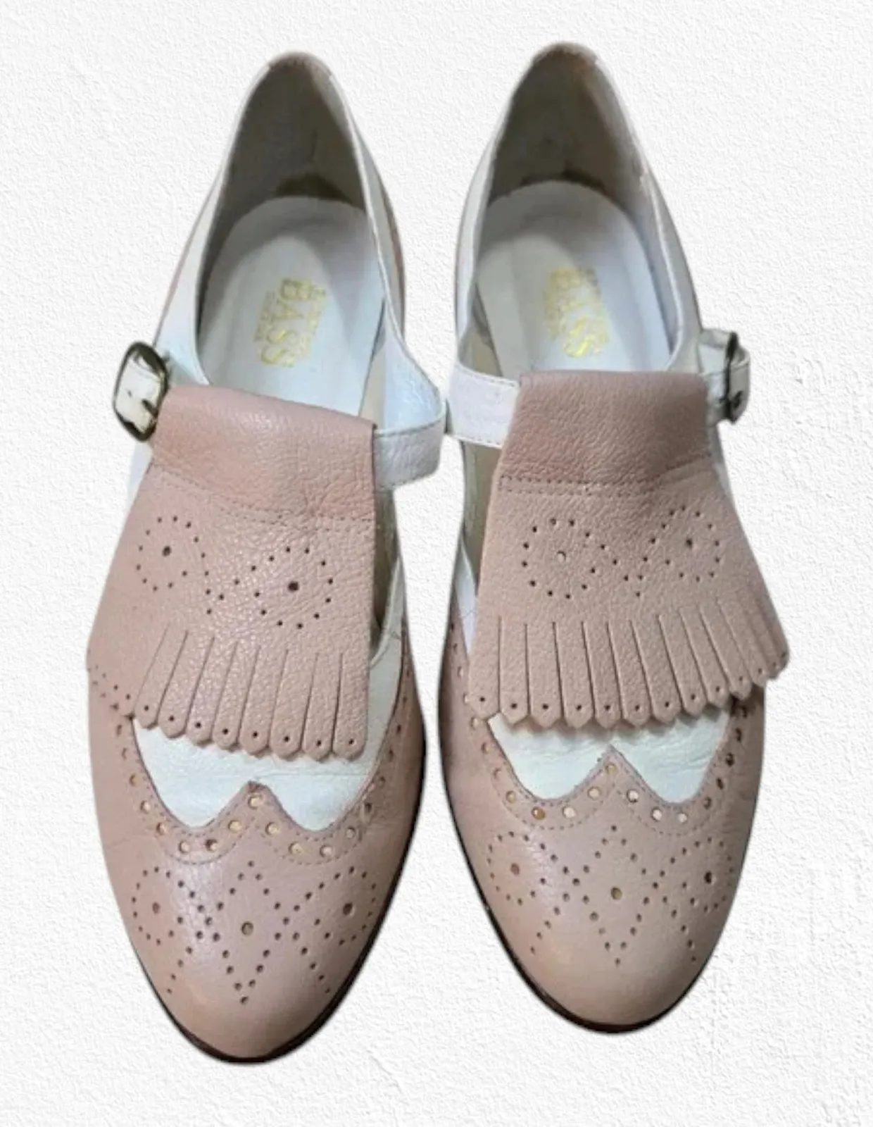 Vintage Wingtip Mary Jane Loafers Brand: G.H. Bass & Co Size: 6.5 M Style Name: Opera Color: White and Mauve Pink EUC Vintage from the 1990s Perforated design Mary Jane with brogue and kiltie details Wingtip design Pointed toe Slight heel Very retro femme style Made in Brazil Perfect for: Preppy, cottagecore, or classic aesthetic lovers A unique statement piece for any outfit Heel Height: 0.5" Heel to Toe Drop: 9.5" 100% Leather Smoke-free home