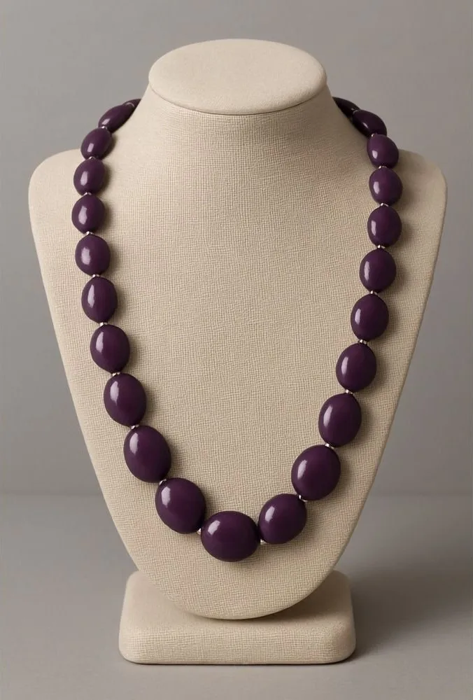 90s Vintage Womens Chunky Purple Silver Beaded Princess Matinee Necklace Y2K Good Preowned Conditio... Show more