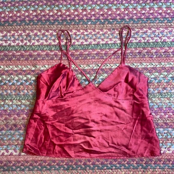 EUC. Sexy strappy detail. 100% silk. From 11/98 Chest 16” Length 18” Bundle to save ❤️