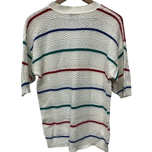 90s Womens Crochet Knit Top Size 1X Short Sleeve Sweater Color Block Rainbow Y2K White - $21 - From Emerald