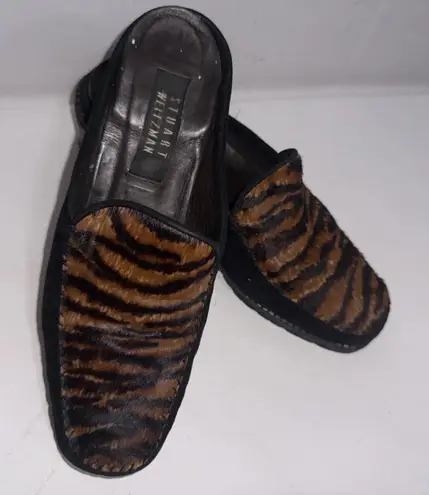 Y2K Vintage 90s or Early 00s Stuart Weitzman Block Heel Slip On Mules with Black & Brown Zebra Print... Show more