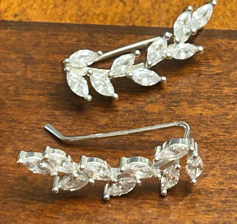 925 sterling silver earrings m90 4.00g flower floral white longer sparkle - $37 - From Dorota