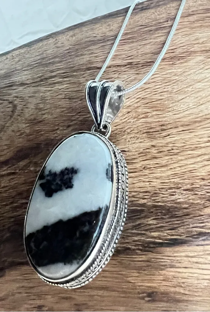 Brand NEW!! Artisan 925 Sterling Silver white Buffalo turquoise Gemstone Handmade with 925 sterling silver rope Native American Necklace Jewelry/ unisex men’s womens necklace jewelry Necklace SIZE: 18” Pendant size m: 2” Vintage Unique type of turquoise known as "White Buffalo Turquoise" or simply "White Buffalo." This stone, primarily mined in Nevada, The stone's distinctive appearance makes it popular in jewelry, especially in Native American designs. Healing Stone, Spiritual Jewelry, Energy Stone Meditation Aid, Protection Stone, Sacred Gemstone Unique Turquoise, Magnesite and Dolomite, Black and White Gem, Boho Jewelry, Artisan Jewelry, Handcrafted Gemstone, Chakra Healing, Crown Chakra Stone, Energy Balancing, Mind Clarity, Holistic Healing, Positive Energy, Native American, Nevada Turquoise Tags: Native American, Bohemian, Boho, Western, Buffalo, Indian, Native, Gemstone, Hippie, Vintage, Horse, Wild, Cow, Rodeo, festival Tags: Opal, Larimar, Moonstone, pendant, Marcasite pendant, Moonstone pendant, Turquoise pendant necklace, Blue Topaz and Blue Copper Oyster Turquoise, chrysocolla pendant necklace, turquoise, Azurite, malachite, Labradorite, chrysoprase, chrysocolla, amethyst, Mystic Topaz, Apatite, Shattuckite, malachite, Abalone, sterling silver 925, tourmaline, Topaz, prehnite, gemstone, moonstone, topaz, blue gemstone, blue topaz, wild horse, labradorite, chrysocolla, chrysoprase, Agate, Pearl, Mystic topaz, rainbow topaz, tourmaline, aquamarine